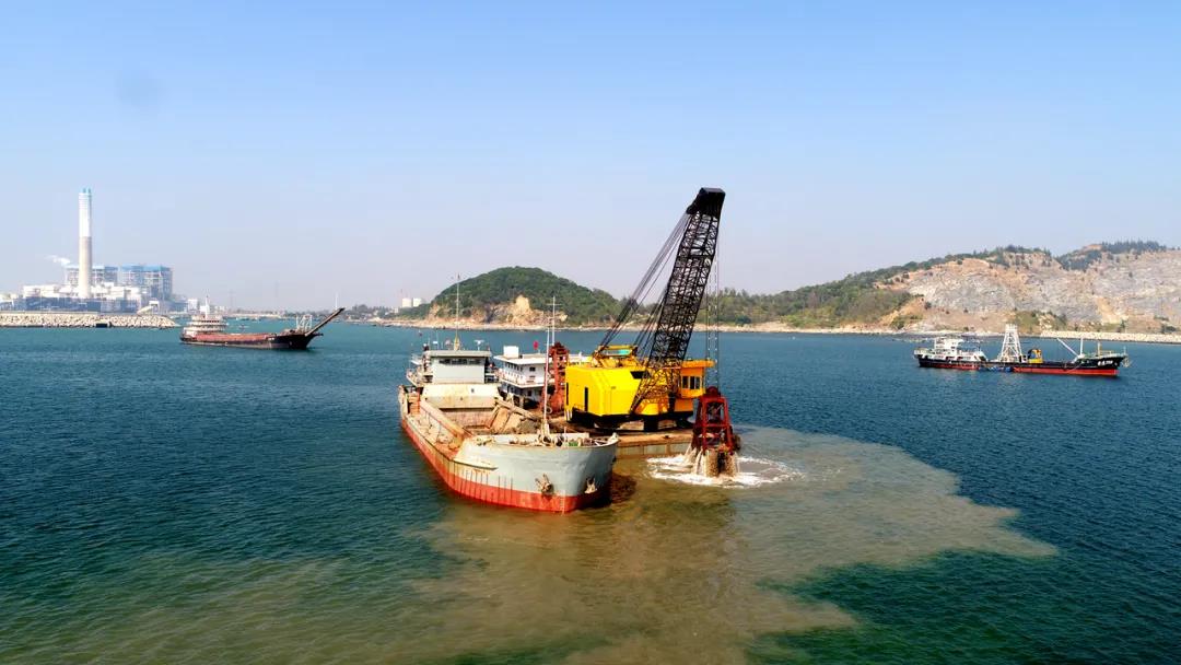 “放!” 轟鳴聲中,隨著項(xiàng)目管理人員一聲令下,東區(qū)化工碼頭項(xiàng)目的海上作業(yè)船穩(wěn)穩(wěn)地放下抓斗,開始項(xiàng)目基槽開挖作業(yè)。