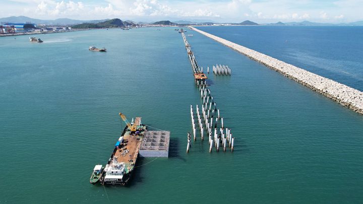 近日,茂名港博賀新港區(qū)東區(qū)油品碼頭工程首件3800噸重的沉箱順利出運(yùn)安裝,項(xiàng)目的碼頭泊位水上施工正式拉開(kāi)帷幕。