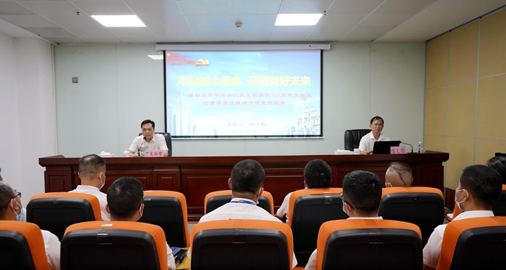 為深入學習貫徹習近平總書記在慶祝中國共產(chǎn)黨成立100周年大會上的重要講話精神,進一步推動黨史學習教育深入開展,9月10日下午,茂名港集團召開學習貫徹習近平總書記在慶祝中國共產(chǎn)黨成立100周年大會上重要講話精神專題宣講報告會。本次宣講會邀請茂名市委宣講團成員、茂名市社科聯(lián)二級調(diào)研員陳文欽到會作專題宣講,會議由集團黨委副書記、總裁肖炳璋主持,集團黨委委員、副總裁楊超燦、集團黨委委員、紀委書記、監(jiān)察專員陳軍和集團機關、各下屬企業(yè)黨員干部職工代表90多人參加報告會。