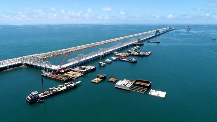 ▲茂名港務(wù)中心項(xiàng)目 在這乘風(fēng)破浪、跨越發(fā)展的十年里,茂名港深水大港崢嶸初現(xiàn),碩果累累——實(shí)現(xiàn)資產(chǎn)規(guī)模和融資規(guī)!半p百”目標(biāo),為濱海新區(qū)基礎(chǔ)設(shè)施建設(shè)和茂名港集團(tuán)發(fā)展提供資金保障,融資平臺(tái)作用凸顯;自建、參建省市重點(diǎn)項(xiàng)目超30個(gè),推動(dòng)博賀新港區(qū)東西防波堤、10萬(wàn)噸級(jí)成品油碼頭、東區(qū)化工碼頭、東區(qū)化工倉(cāng)儲(chǔ)、粵西LNG造陸項(xiàng)目、茂名港務(wù)中心、博賀灣大橋、供水工程等一批省市重點(diǎn)項(xiàng)目建設(shè)投用,充分發(fā)揮濱海新區(qū)項(xiàng)目建設(shè)主體作用,加快推進(jìn)口岸開放工作,為茂名經(jīng)濟(jì)實(shí)現(xiàn)高質(zhì)量發(fā)展增添動(dòng)力。 前瞻布局,打造南海能源新通道,積極融入茂名“向海而興”發(fā)展大局。