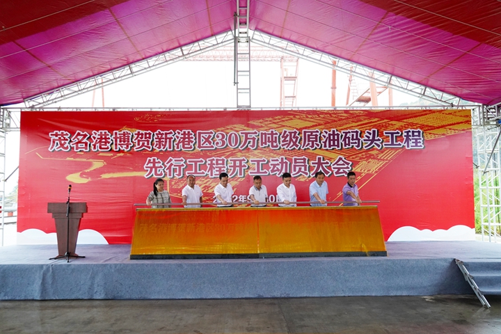 張有欽指出,茂名港博賀新港區(qū)30萬(wàn)噸級(jí)原油碼頭工程先行工程開工動(dòng)員活動(dòng)是落實(shí)市委、市政府“建深水大港、興濱海綠城”發(fā)展戰(zhàn)略工作部署的具體行動(dòng),將有力推動(dòng)濱海新區(qū)打造千億級(jí)臨港產(chǎn)業(yè)集群。希望茂名港集團(tuán)在確保質(zhì)量安全的前提下,力爭(zhēng)30萬(wàn)噸級(jí)原油碼頭項(xiàng)目早日建成投產(chǎn),為茂名市、濱海新區(qū)高質(zhì)量發(fā)展夯實(shí)基礎(chǔ)、積蓄后勁。濱海新區(qū)各相關(guān)部門要強(qiáng)化大局意識(shí)、服務(wù)意識(shí)、責(zé)任意識(shí)和協(xié)作意識(shí),優(yōu)化建設(shè)環(huán)境、提高行政效能,積極主動(dòng)做好協(xié)調(diào)服務(wù),幫助解決困難和問(wèn)題,確保項(xiàng)目順利實(shí)施、加快建設(shè)。 王志華表示,茂名港博賀新港區(qū)30萬(wàn)噸級(jí)原油碼頭工程是茂名港進(jìn)一步提升港口等級(jí)的標(biāo)志性工程,對(duì)完善博賀新港區(qū)碼頭布局、豐富港口服務(wù)功能、提升港口競(jìng)爭(zhēng)力具有重要意義。他要求,集團(tuán)上下要以這次動(dòng)員大會(huì)為新的起點(diǎn),全力推進(jìn)全年重點(diǎn)項(xiàng)目建設(shè)目標(biāo)圓滿完成。一是堅(jiān)定信心,提高政治站位,要緊緊圍繞“建深水大港、興濱海綠城”發(fā)展戰(zhàn)略,切實(shí)增強(qiáng)抓項(xiàng)目穩(wěn)發(fā)展的責(zé)任感緊迫感,把思想統(tǒng)一到全市抓項(xiàng)目促投資150天大會(huì)戰(zhàn)動(dòng)員會(huì)議的工作部署上來(lái),加快推進(jìn)30萬(wàn)噸級(jí)原油碼頭順利實(shí)施。二是真抓實(shí)干,積極主動(dòng)作為,按照市委、市政府關(guān)于茂名港口岸擴(kuò)大開放工作部署,集中力量,細(xì)化量化推進(jìn)項(xiàng)目流程和節(jié)點(diǎn)任務(wù),全力推進(jìn)博賀新港區(qū)碼頭建設(shè),確保全面完成各項(xiàng)目建設(shè)目標(biāo),助力茂名港順利實(shí)現(xiàn)口岸擴(kuò)大開放。三是加強(qiáng)黨的領(lǐng)導(dǎo),樹牢廉政風(fēng)險(xiǎn)防范意識(shí),強(qiáng)化底線思維和紅線意識(shí),以優(yōu)良作風(fēng)推動(dòng)項(xiàng)目建設(shè),以項(xiàng)目建設(shè)錘煉干部作風(fēng),努力打造茂名港口建設(shè)的優(yōu)質(zhì)工程、廉潔工程,推動(dòng)茂名港集團(tuán)高質(zhì)量發(fā)展。 程志磊表示,中交一航局二公司將秉承“寧讓汗水漂起船、不讓工期拖一天”的光榮傳統(tǒng),堅(jiān)決扛起央企政治責(zé)任,全面貫徹落實(shí)各項(xiàng)工作要求,集中優(yōu)質(zhì)資源、調(diào)集精干力量,發(fā)揮技術(shù)、裝備和人才優(yōu)勢(shì),嚴(yán)把工程安全關(guān)、質(zhì)量關(guān)、進(jìn)度關(guān),確保茂名港博賀新港區(qū)30萬(wàn)噸級(jí)原油碼頭項(xiàng)目早日建成投產(chǎn),為茂名現(xiàn)代化濱海城市建設(shè)貢獻(xiàn)力量!