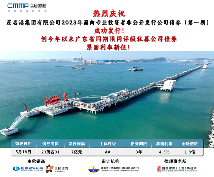 熱烈祝賀茂名港集團2023年非公開發(fā)行7億元公司債券成功發(fā)行