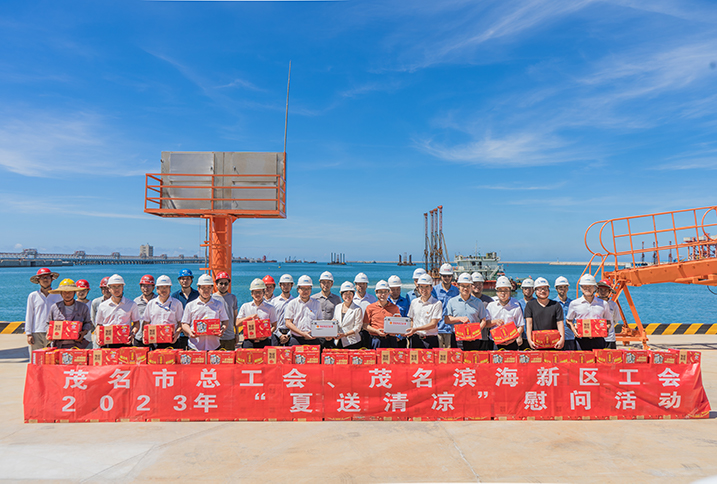 7月25日,茂名市總工會黨組成員、常務副主席柯周梅率市總工會工作人員走進茂名港集團項目建設工地,開展“夏送清涼”慰問及調研活動,為一線職工送上防暑降溫飲品、用品。茂名港集團黨委委員、副總裁、工會主席楊超燦參加活動。