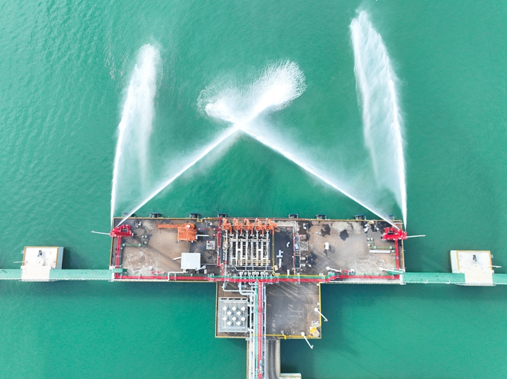 2023年12月27日,隨著8條“水龍”噴涌而出,博賀新港區(qū)東區(qū)化工碼頭消防系統(tǒng)聯(lián)運(yùn)調(diào)試工作取得圓滿成功,這標(biāo)志著繼油品碼頭之后,茂名港集團(tuán)化工碼頭也完成了由項(xiàng)目建設(shè)轉(zhuǎn)向生產(chǎn)運(yùn)營的關(guān)鍵一環(huán)。