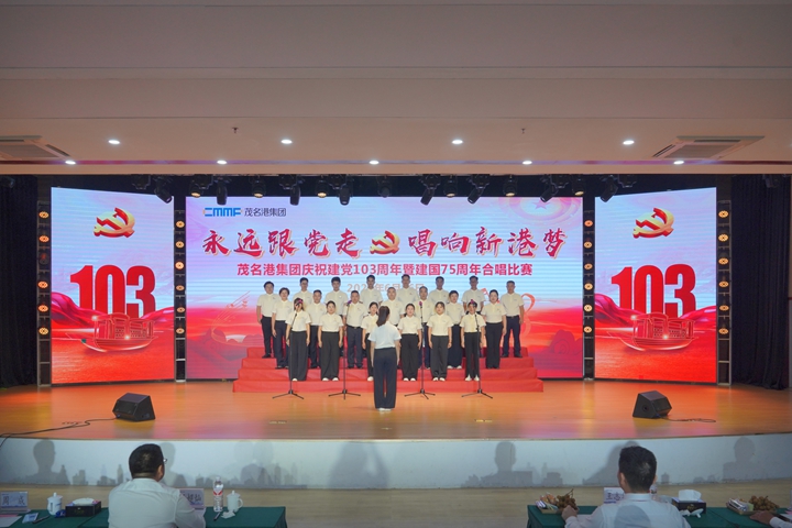 6月26日,茂名港集團(tuán)舉辦慶祝建黨103周年暨建國(guó)75周年“永遠(yuǎn)跟黨走,唱響新港夢(mèng)”主題紅歌大合唱比賽。來(lái)自集團(tuán)各黨支部的8支代表隊(duì)參加,以紅歌傳唱為契機(jī)、以紅色歌曲為傳播載體,重溫中國(guó)共產(chǎn)黨的崢嶸歲月和光輝業(yè)績(jī),并以最美好的祝福,向黨的103歲誕辰、新中國(guó)成立75周年獻(xiàn)禮!