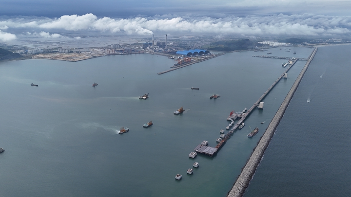 據(jù)悉,30萬噸級原油碼頭設(shè)計(jì)年吞吐量達(dá)1600萬噸,泊位長度達(dá)404米,碼頭共設(shè)計(jì)有145根樁基,由工作平臺(tái)及工作樓平臺(tái)的70根樁基和附屬管廊橋工程的75根樁基組成,其中工作平臺(tái)及工作樓平臺(tái)的70根樁基已于2023年底全部完工。