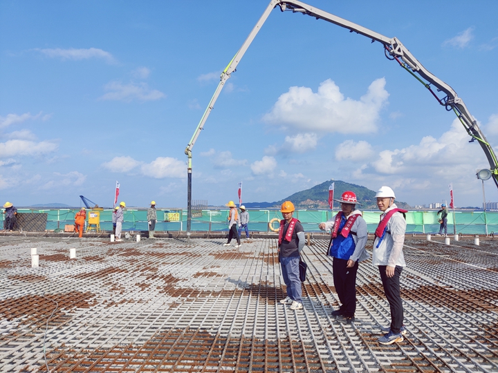 面對復(fù)雜的項目質(zhì)量問題,他從不退縮。他總是冷靜思考,運(yùn)用自己豐富的經(jīng)驗和專業(yè)知識,迅速找到問題的根源,并制定出切實可行的解決方案。6月18日,30萬噸級原油碼頭項目現(xiàn)場澆筑長48米、寬37米、高2.5米工作樓墩臺大體積混凝土施工,現(xiàn)場巡視和檢查時,他發(fā)現(xiàn)施工單位未按照審批實施方案進(jìn)行施工,混凝土表觀質(zhì)量出現(xiàn)裂紋和施工冷縫現(xiàn)象。當(dāng)即,叫來施工技術(shù)人員和專監(jiān),進(jìn)行查找和分析原因,糾正施工工藝和改進(jìn)措施,同時總結(jié)經(jīng)驗,優(yōu)化技術(shù),既解決了當(dāng)前的問題,也為后續(xù)混凝土澆筑提供保障。他堅信,質(zhì)量是項目的生命,任何一點(diǎn)馬虎都可能導(dǎo)致不可挽回的后果。 為了確保項目的高質(zhì)量推進(jìn),他不僅注重現(xiàn)場的監(jiān)督和檢查,還積極推動質(zhì)量管理體系的建設(shè)和完善,對重大與典型施工進(jìn)行全程監(jiān)督管理。他組織培訓(xùn),向團(tuán)隊成員傳授質(zhì)量管理的方法和技巧,培養(yǎng)和提高大家的質(zhì)量意識,讓質(zhì)量理念深入人心。