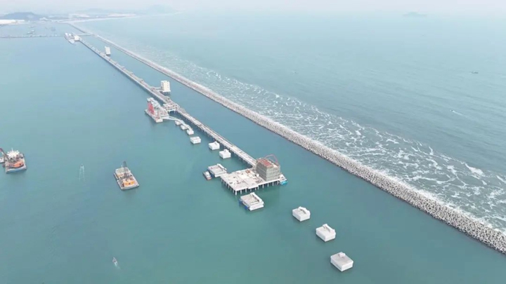 12月25日,隨著最后一方混凝土在工作樓頂層澆筑成型,茂名港博賀新港區(qū)30萬噸級原油碼頭工程工作樓順利封頂。從項目藍(lán)圖到喜封金頂,不僅標(biāo)志著項目取得了重要的階段性勝利,也是30萬噸級原油碼頭項目臨時黨支部在2024年取得的又一勝利戰(zhàn)果。