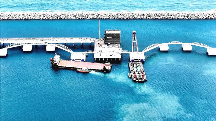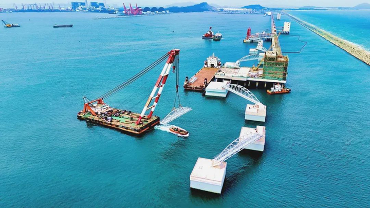 在新年伊始的奮進(jìn)號角中,茂名港30萬噸級原油碼頭工程于2月23日全面完成了鋼聯(lián)橋安裝施工,標(biāo)志著項(xiàng)目建設(shè)完成關(guān)鍵新節(jié)點(diǎn)。這一重要突破為30萬噸級原油碼頭工程新年開好局、起好步奠定了堅(jiān)實(shí)基礎(chǔ),也為加快項(xiàng)目建設(shè),保障工程如期竣工注入了強(qiáng)勁動力。