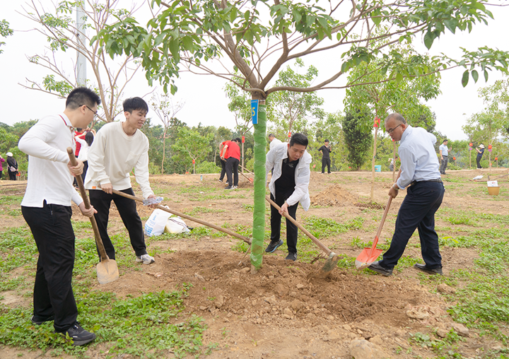 活動現(xiàn)場,集團職工們熱情高漲,分工協(xié)作,揮鍬鏟土、扶苗填坑、提水澆灌,認真細致地完成每一道植樹工序。大家還為每棵新栽種的樹苗掛上專屬紀(jì)念銘牌,寄托對綠色發(fā)展的美好祝愿。在大家的共同努力下,一棵棵樹苗扎根沃土,在春日里煥發(fā)出勃勃生機,為茂名大地增添了一抹新綠。 一直以來,茂名港集團都積極支持茂名的植樹造林工作,將綠色發(fā)展理念融入企業(yè)發(fā)展的各個環(huán)節(jié)。在日常生產(chǎn)經(jīng)營中,集團注重節(jié)能減排、環(huán)境保護,推動港口作業(yè)的綠色化、智能化升級。此次參與“綠美茂名·好心林”公益植樹活動,是集團踐行社會責(zé)任、助力茂名生態(tài)建設(shè)的又一具體舉措。