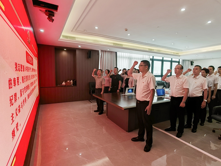 為深入學(xué)習(xí)貫徹習(xí)近平新時(shí)代中國(guó)特色社會(huì)主義思想,進(jìn)一步加強(qiáng)黨建引領(lǐng),推動(dòng)黨建與業(yè)務(wù)深度融合,7月15日,茂名港集團(tuán)機(jī)關(guān)黨支部與中國(guó)人民銀行茂名市分行宏觀審慎與金融市場(chǎng)管理科黨支部、國(guó)家外匯管理局茂名市分局黨總支聯(lián)合開(kāi)展了主題黨日活動(dòng)。中國(guó)人民銀行茂名市分行二級(jí)調(diào)研員嚴(yán)青,集團(tuán)黨委委員、副總裁楊超燦以及雙方黨支部書(shū)記、黨員代表共20余人參加活動(dòng)。
