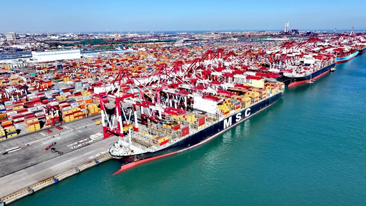 在建成全國首座全國產(chǎn)全自主自動化碼頭基礎(chǔ)上,青島港加速智慧港口迭代升級,推動人工智能應(yīng)用中試基地成果轉(zhuǎn)化。今年以來,持續(xù)優(yōu)化、推廣自主研發(fā)的A-TOS(碼頭智能管控系統(tǒng)),13次刷新自動化碼頭裝卸效率世界紀(jì)錄;推進(jìn)傳統(tǒng)碼頭自動化改造,通過研發(fā)碼頭智能體、攻關(guān)自動化裝卸關(guān)鍵技術(shù),實現(xiàn)全場景、全流程、全機(jī)種自動化,助力集裝箱、紙漿、鐵礦石、糧食等貨種接連打破效率紀(jì)錄;打造“云港通”口岸線上服務(wù)平臺,實現(xiàn)“關(guān)港通”智慧查驗,應(yīng)用全球首個港口服務(wù)大模型方舟TaaS,進(jìn)一步提升了裝卸作業(yè)的服務(wù)體驗和決策效率。 智慧港口效率的提升離不開海關(guān)監(jiān)管服務(wù)的升級保障。青島海關(guān)充分發(fā)揮山東港口青島港在‘一帶一路’中的陸;ヂ(lián)優(yōu)勢,推廣“先期機(jī)檢”“抵港直裝”“船邊直提”等自動化作業(yè)模式,通過升級升級智能空軌、集裝箱順勢核重等智能化設(shè)施設(shè)備,將海關(guān)監(jiān)管無縫嵌入港口生產(chǎn)作業(yè),實現(xiàn)了海關(guān)與港口物流信息交互,為外貿(mào)企業(yè)打造了一條綠色、高效的出海物流通道。